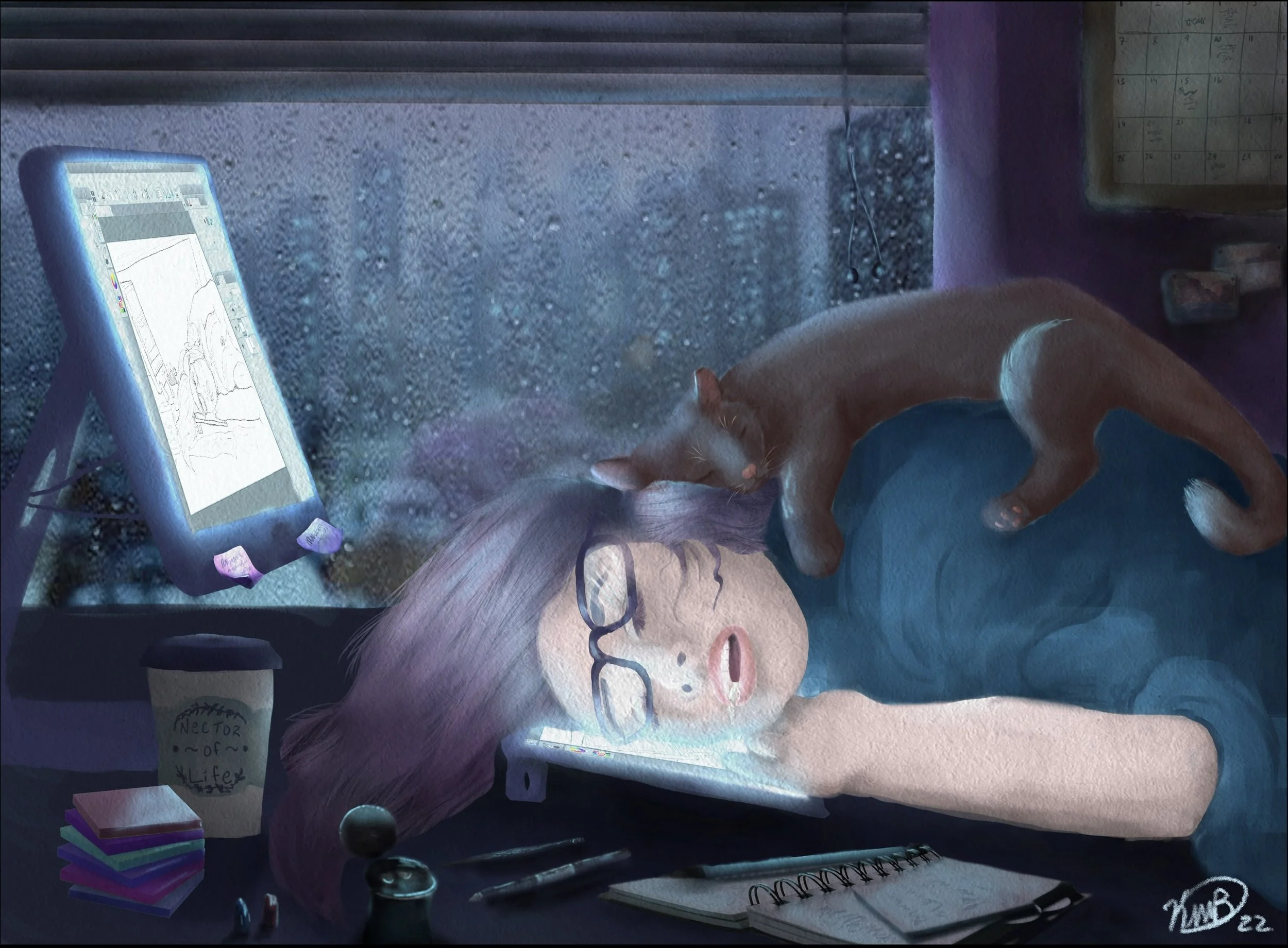 When I’m not making digital art with Adobe Photoshop & Clip studio, my favorite mediums to use are watercolor, acrylics, and colored pencils. I also love spending my free time curled up with a good book or gaming with friends.